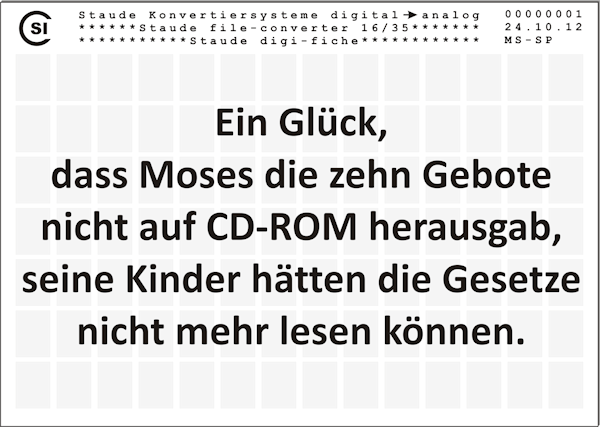 Konvertieren von digitalen Images auf den Langzeitspeicher Mikrofilm Farbscanner zum Digitalisieren von Dokumenten, Büchern, Zeichnungen, Zeitungen und allen anderen Vorlagen bis zur Größe A0. Digitalisieren, Verfilmen und Konvertieren mit einem System. Mikrofilm Entwicklungsgeräte, Diazo Duplizierer und Verbrauchsmaterial Digitalisieren, Verfilmen oder Konvertieren. Was dürfen wir für Sie tun?