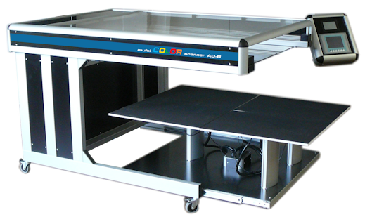 Werden größere Vorlagen wie z.B. Zeichnungen oder Landkarten gescannt, wird der hintere Buchteller über ein Touch-Screen aktiviert und man hat Zugriff auf die maximale Scanfläche. Ab jetzt muss die Bedienkraft nur noch Seiten umblättern bzw. den Scanvorgang per Hand- oder Fußschalter auslösen. Nach Betätigung des Schalters fährt die Buchwippe nach oben an die Glasplatte, der Scanvorgang wird ausgelöst und nach dessen Ende senkt sich die Buchwippe wieder automatisch ab. In der Buchwippe integrierte Sensoren verhindern ein zu starkes Andrücken des Buches gegen die Glasplatte und können individuell eingestellt werden. Ein speziell entwickeltes Beleuchtungselement aus Leuchtdioden gewährleistet einen Scannvorgang, der frei von infraroter Strahlung, ultraviolettem Licht und Wärme stattfindet. Das scannoptische Element des Buchscanners SI-0B besteht aus versiegelten Einheiten, wodurch Qualitätseinbußen durch Staub der Vergangenheit angehören. Durch Verwendung neuster Technologien werden atemberaubende Scanngeschwindigkeiten erzielt sowie eine Image-Qualität erreicht, die Maßstäbe setzt.